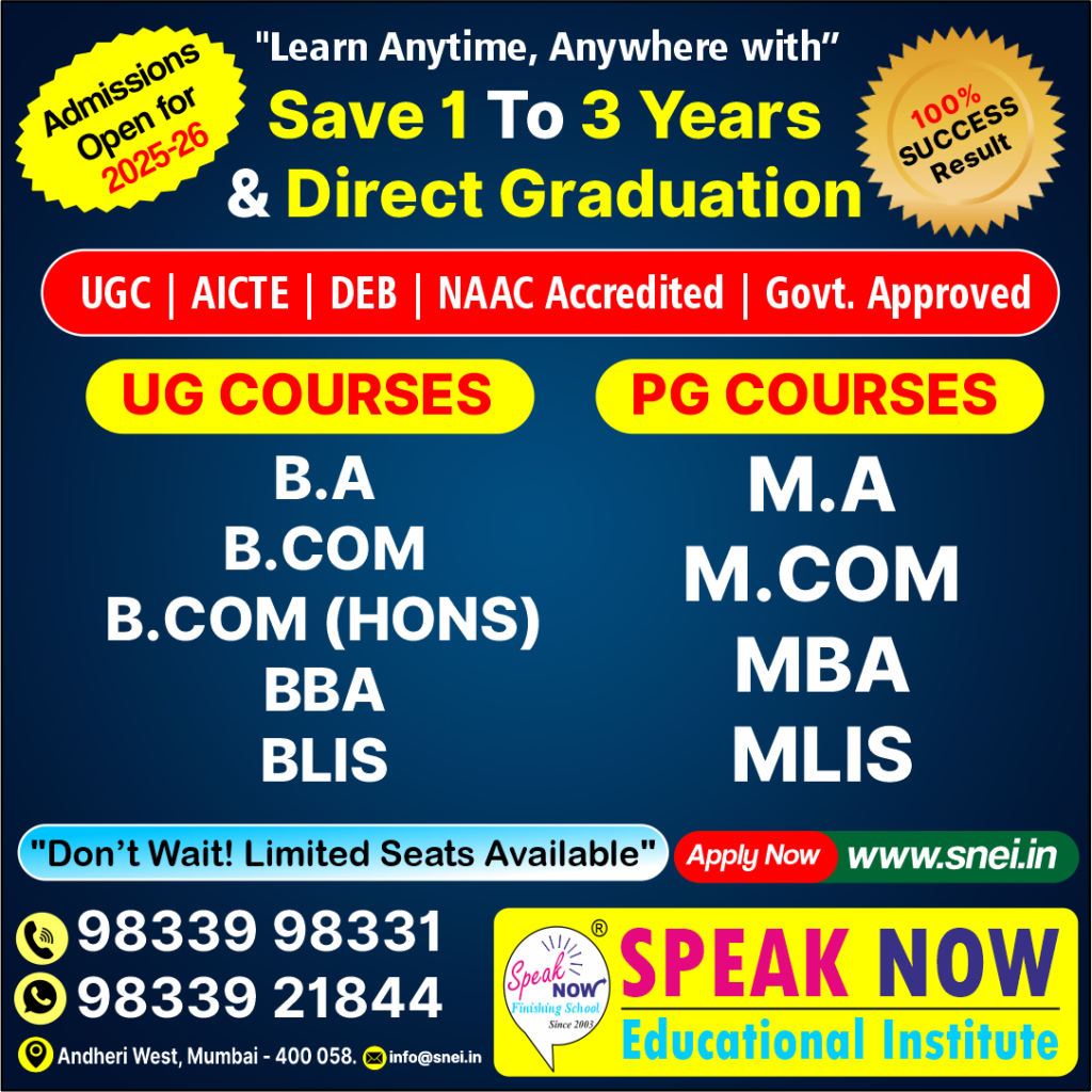 "I am truly grateful to Speak Now Educational Institute for their constant support and expert guidance during my 12th NIOS studies. Their clear instructions, well-prepared study materials, and motivating approach made my learning journey smooth and successful."